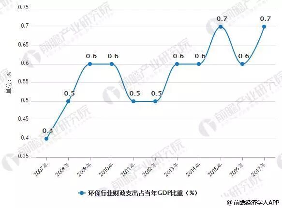 2007-2017年环保行业财政支出占当年GDP比重情况